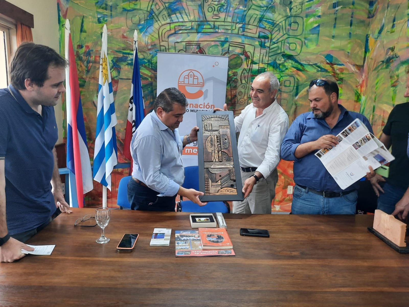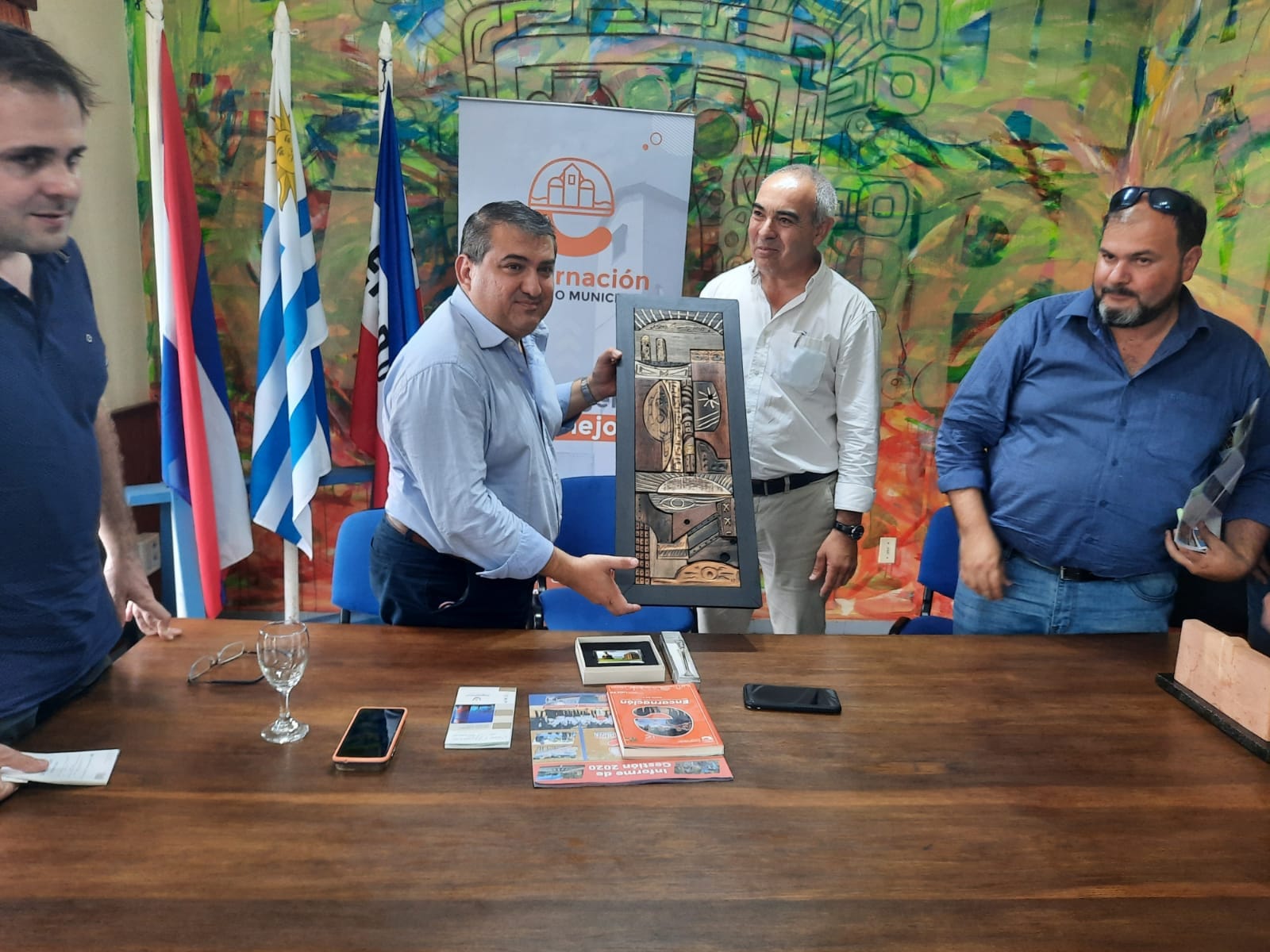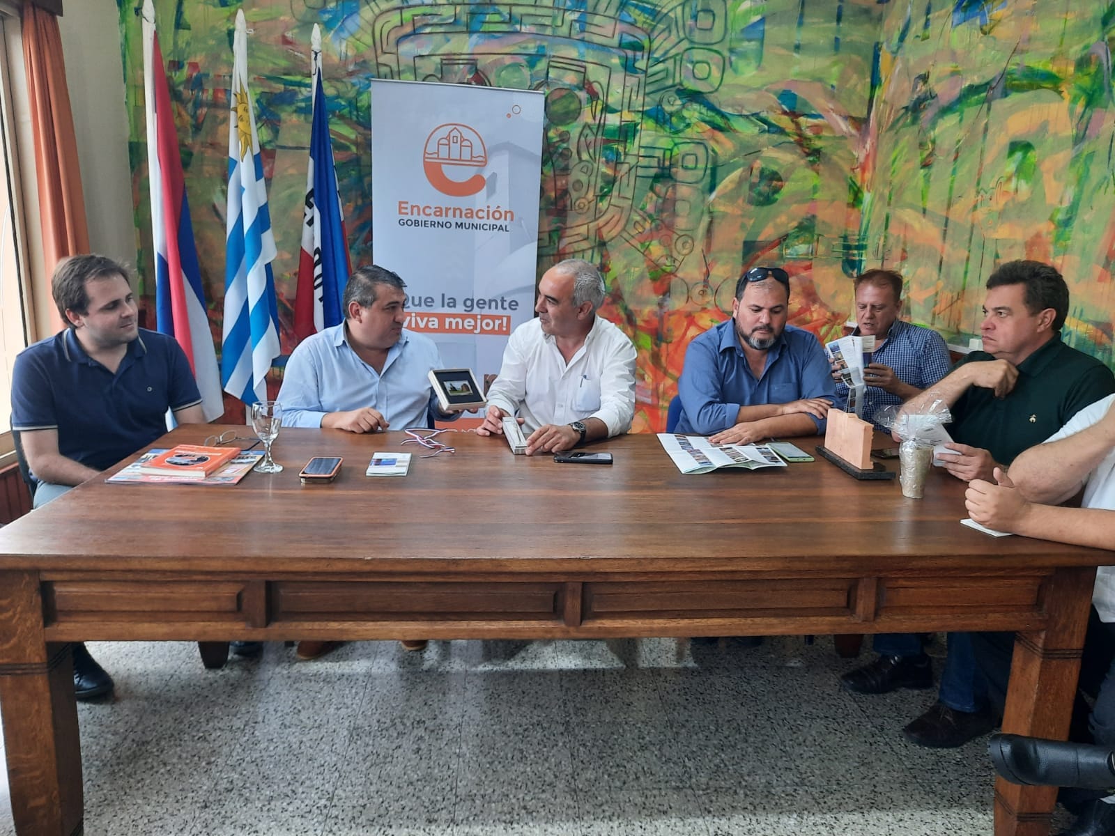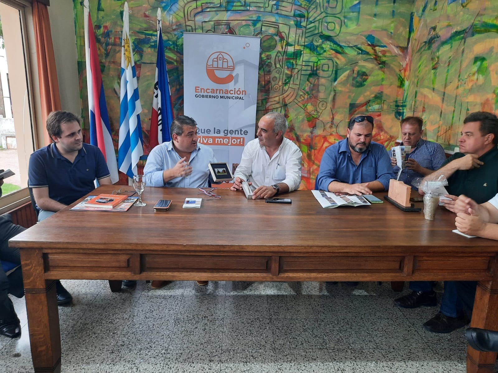 Dicha delegación estuvo encabezada por el Intendente Alfredo Luis Yd Sánchez acompañado de concejales y representantes de la Embajada de Paraguay. En esta instancia se trabajó con el fin de fortalecer lazos de hermandad entre nuestro departamento y el Municipio de Encarnación, además se intercambió experiencias de desarrollo con proyección de futuro. Estuvieron por la Intendencia Departamental el Director de Turismo Marcelo Crespi, el Director de Municipios Augusto Souza, el Alcalde Asdrúbal Rodríguez, la Secretaria General del Municipio Jimena Garrido, el Responsable de Prensa del Municipio Tomás Larregui, Diego Hornos.