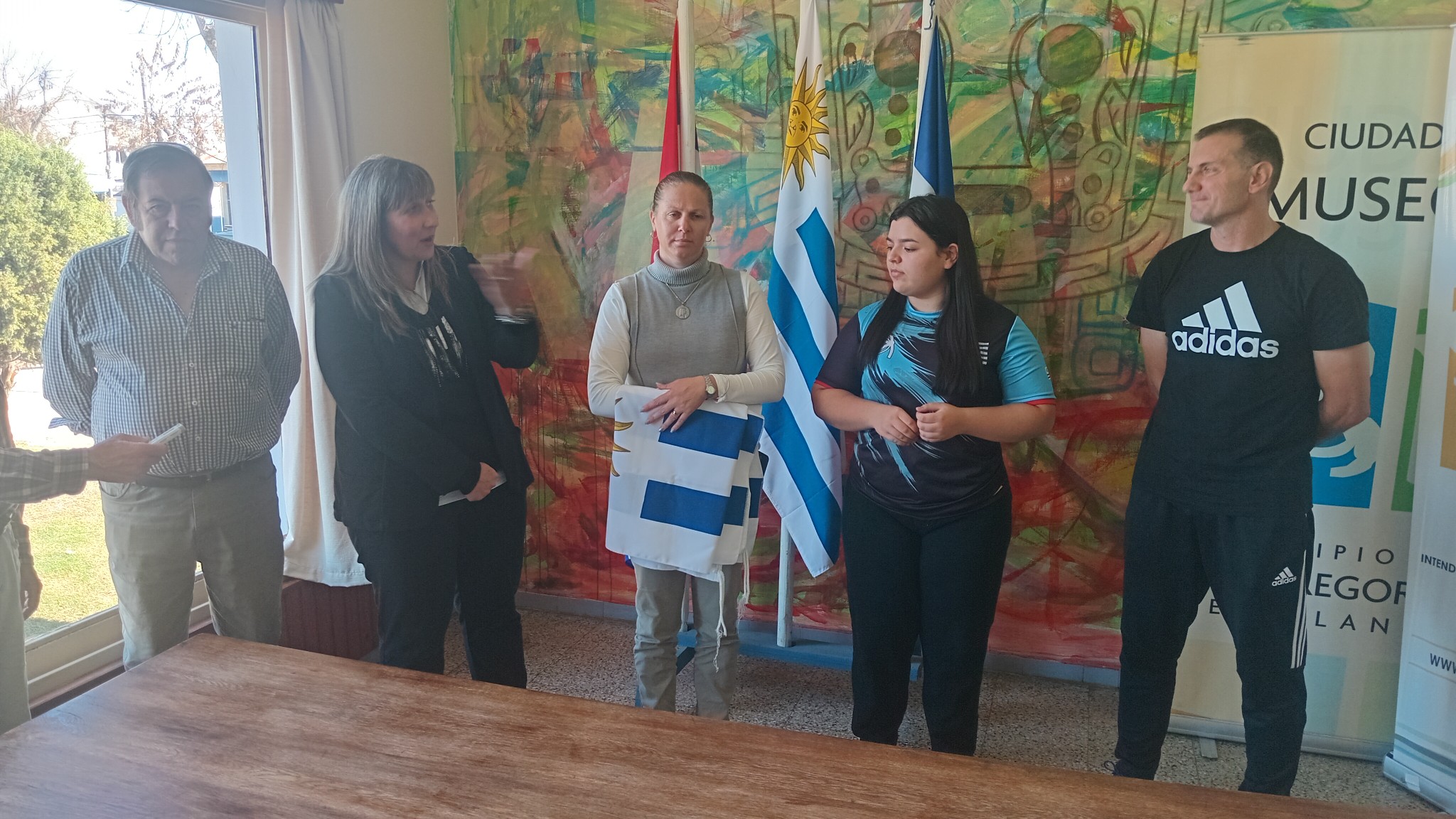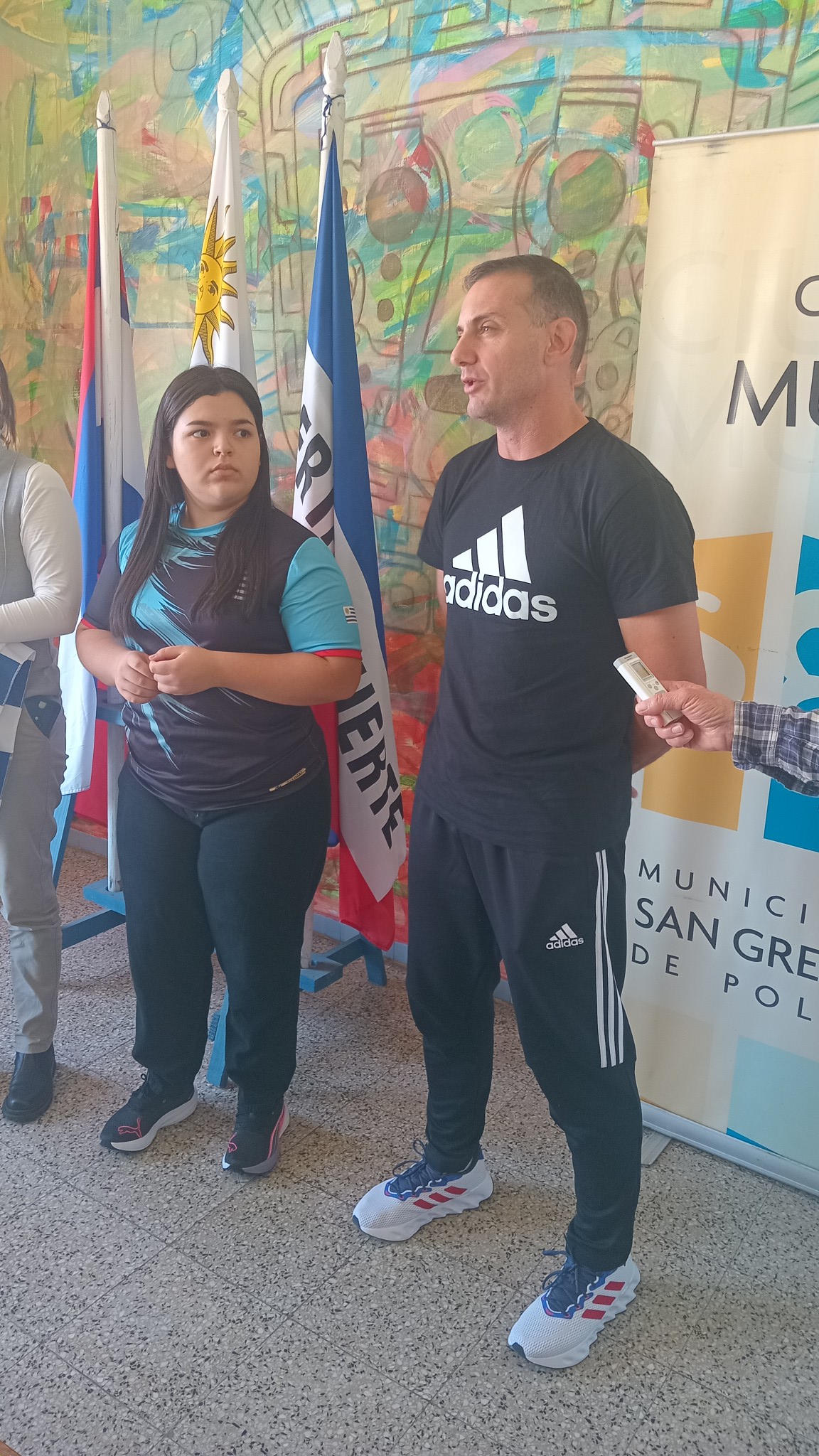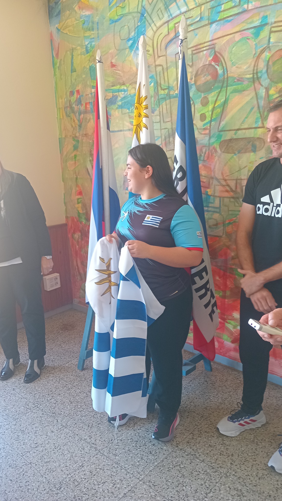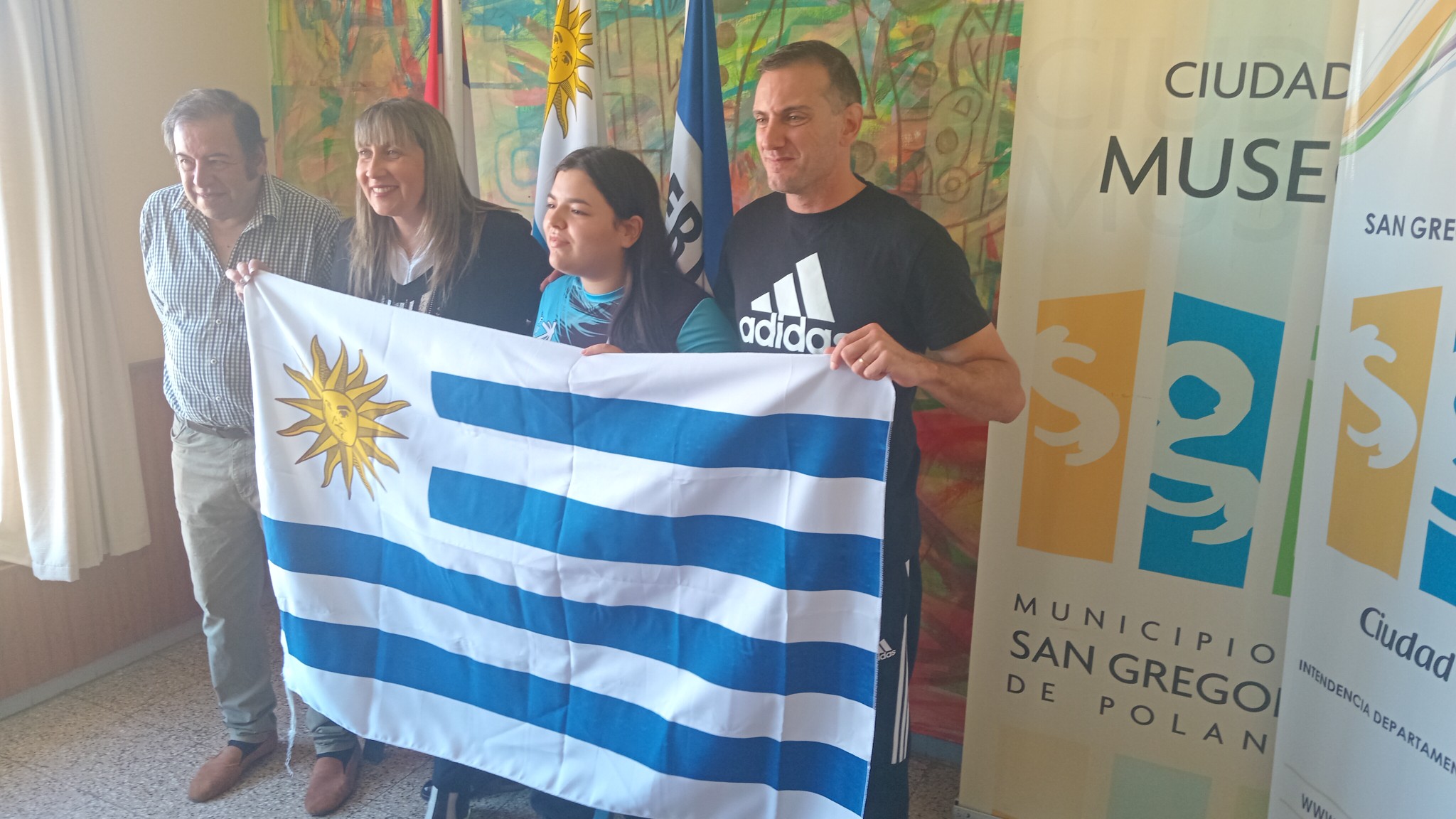 Quien nos representará en el Sudamericano de Tenis de Mesa en Colombia y en Lima Perú. El Municipio de San Gregorio de Polanco por Medio de la Alcaldesa Lourdes Lacuesta y el Concejal Juan A. Rivero y del Director de Deportes de la Intendencia Departamental, Matias Grizutti entregó el Pabellón Nacional a la joven Polanqueña, a la joven y destacada deportista Polanqueña Krissia Lavandera Mautones