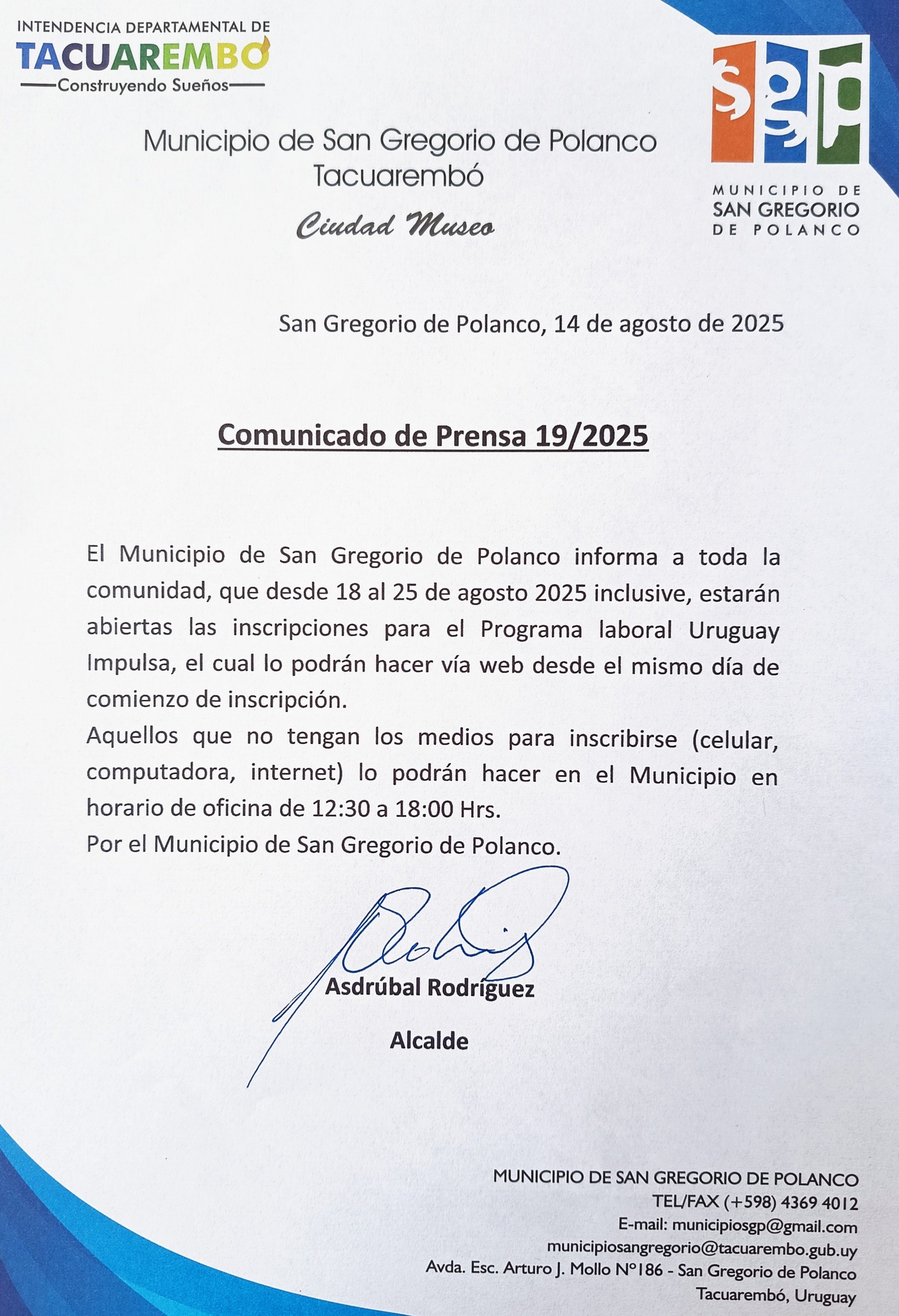 Comunicado de Prensa 19/2025